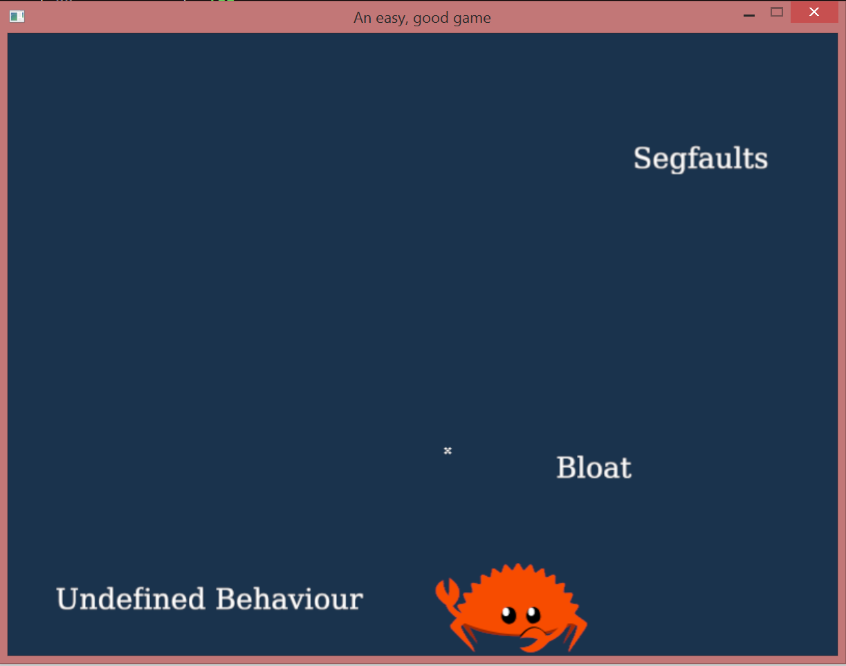 Библиотеката има стабилна версия 0.5.1, но поне под линукс/X11 ударих на panic on mouseover… Това не е свързано с GGEZ, а с една от вътрешните библиотеки, но означава, че ми трябваше непубликувания devel